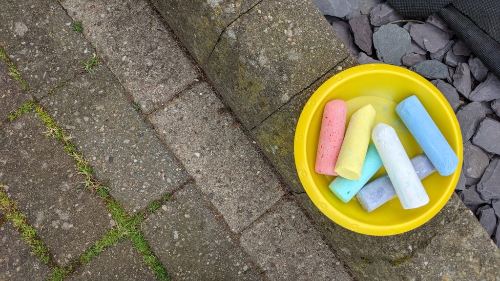 Chalk is a great play idea for small children. It comes in fun colours and makes a bit of a mess, which kids love. It can be such a great way for kids to let their imaginations go wild and improve their fine motor skills which are so important for becoming independent.