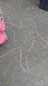 3. Body Outline: Trace around the outside of your child on the ground and get them to decorate their chalk body with chalks or leaves or other natural things.