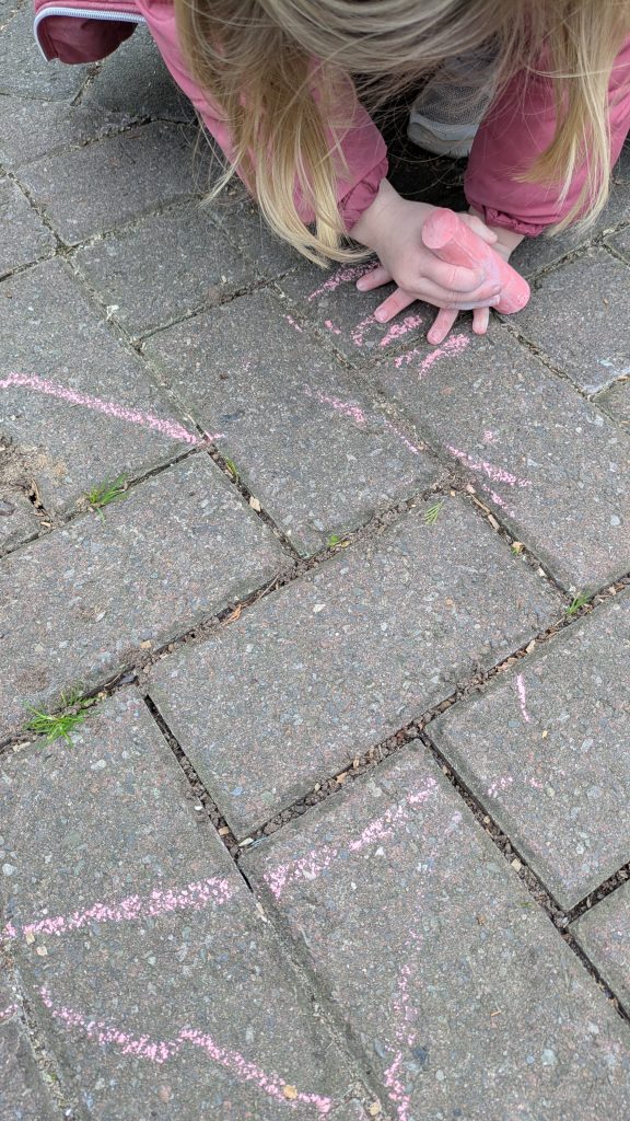 We find the easiest ones for our kids to use are the big, thick, chunky chalks. They’re easier to hold for little hands than the normal adult ones you’d find and kids can hold them any way they like.