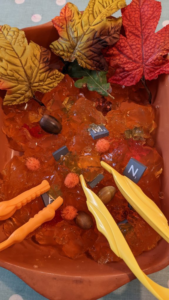 Provide opportunities with sensory trays and smaller items with child-friendly tweezers. This will practise their pincer grip and help build up the muscles in their hands and fingers.