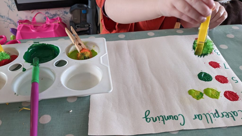 Pegging up paper, doll’s clothes or socks on a washing line will help build up the strength in your little one’s hands. Tie some string up between two points in your playroom or outside and provide a basket of pegs an