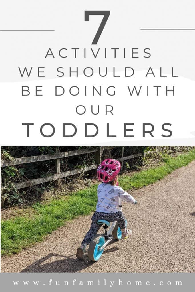 I’ve compiled a list of seven different areas that you can provide activities for every day in order to help your toddler grow and learn. Don’t worry if you don’t manage all seven every day but try to make sure that over a week, you’ve covered all areas.